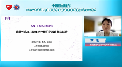 隱蔽性高血壓是一種特殊類型的高血壓,患者來院時偶測血壓數(shù)據(jù)可能不高,需要通過24小時動態(tài)血壓監(jiān)測或家庭血壓監(jiān)測來診斷。據(jù)國內(nèi)眾多研究顯示,隱蔽性高血壓患者靶器官損傷和心血管事件發(fā)生風(fēng)險較正常血壓者顯著增加,ANTI-MASK研究作為第一項探索隱蔽性高血壓患者降壓治療效果的臨床試驗,首次說明了降壓治療有利于隱蔽性高血壓患者的靶器官保護(hù)。為讓更多臨床醫(yī)生知曉隱蔽性高血壓危害,優(yōu)化隱蔽性高血壓患者治療策略,在第八屆中國血壓監(jiān)測學(xué)術(shù)會議期間,上海市高血壓研究所、上海交通大學(xué)醫(yī)學(xué)院附屬瑞金醫(yī)院李燕教授特帶來專題報告,解讀ANTI-MASK研究的試驗流程與試驗結(jié)果。